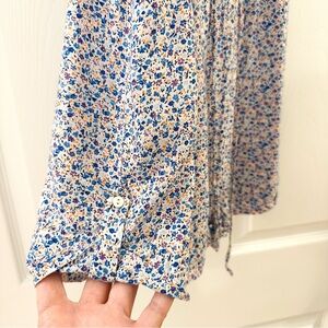 H&M Floral Tie Waist Romper Smocked Top Button Front Blue