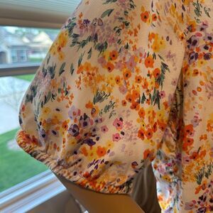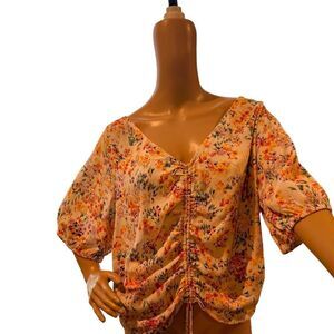 H&M Floral Top Blouse Summer Short Sleeves V-Neck Low Cut Back Women’s