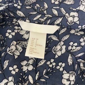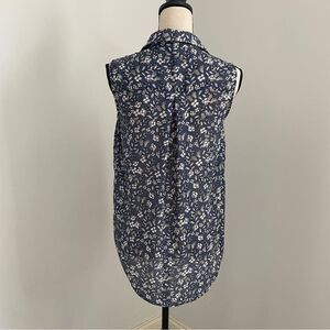H&M Floral Sleeveless Button Down Shirt size 2 XS SlateBlue White Relaxed Blouse
