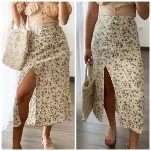 The lightweight viscose material of this midi makes it airy and breathable and the high waist and high slit at the front accentuate your figure while giving the skirt a more flattering silhouette and the right amount of allure. Pair it with a white shirt and some white trainers for that classic Parisienne look or elevate it with a pair of heels, a crop top and lots of jewellery for nighttime.