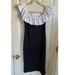 H&M Flounced Off The Shoulder Dress Sz M Black White Sheath Stretch Coquette