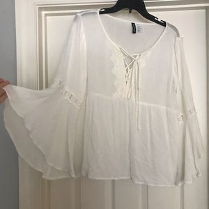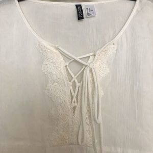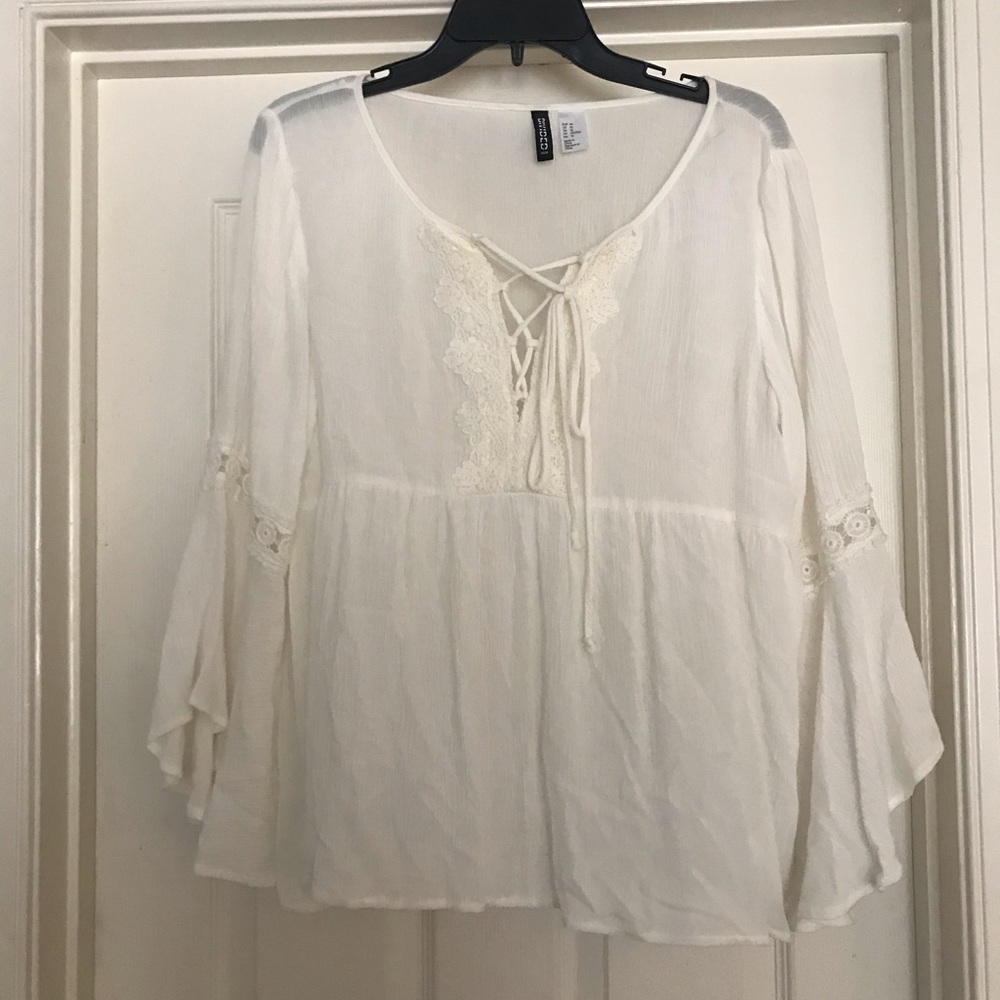 Flowy top from H&M! Only worn once and in great condition. Able to tie and adjust the V in the middle. (Says size 10 but fits like a M so that’s why the size is listed as M)