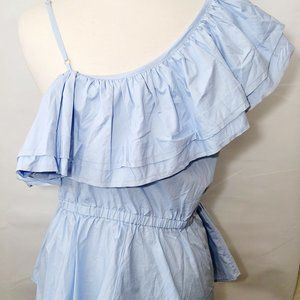 H&M Womens Light Blue Flutter One Sleeve Strappy Ruffle Shirt Size 12 NEW