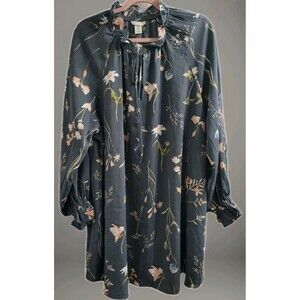 H&M Frilled-Collar Dress Grey Floral Size Medium Moody Preppy Romantic NWT