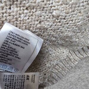 This H&M sleeveless knit cardigan features statement fringe detailing for a unique and stylish look. Made from an acrylic blend for a soft and cozy fit, it comes in a neutral beige tone that pairs easily with various outfits. Designed for a layered boho-inspired style.