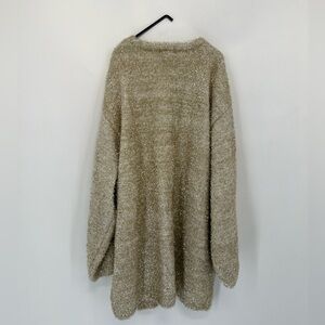 H&M Fuzzy Sparkly Glittery Textured Wide Sleeve Slouchy Cardigan In Beige Gold