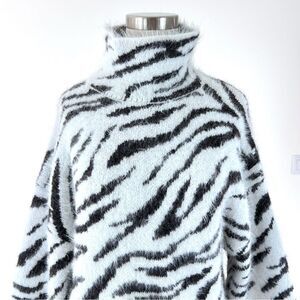 H&M Women Sweater Oversized Fuzzy Heavy Turtleneck Zebra Animal Black White
