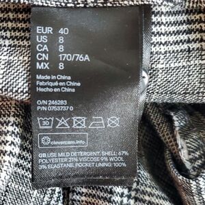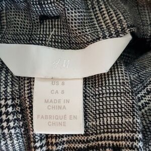 H&M GLEN PLAID KNIT PANTS HIGH PAPER BAG WAIST BLACK WHITE ACADEMIA PREPPY SIZE 8