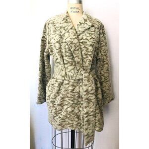 H&M GRAY OLIVE BRONZE METALLIC ANIMAL JACQUARD BELTED CARDIGAN 12 NWT