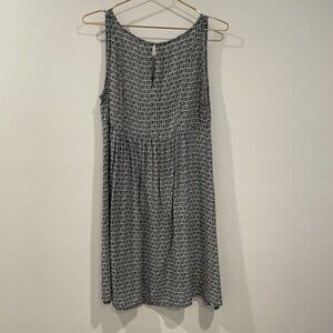 H&M Geometric White Black Keyhole Back Sleeveless A-line Dress Size 8