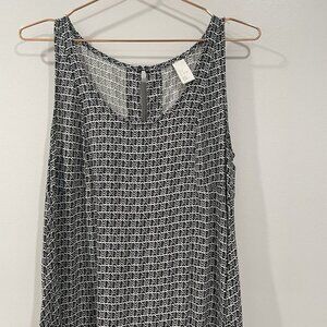 H & M Geometric White Black Keyhole Back Sleeveless A-line Dress Size 8