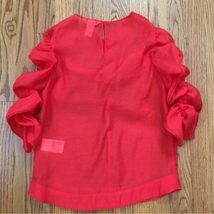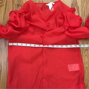 H&M Georgette Red Top V-neck 3/4 long puff sleeve blouse