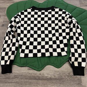 H&M Girls 12/14 Black White Check Cropped Sweater