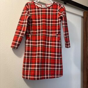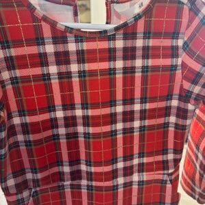 *No refunds* Worn once. The product is a H&M girls holiday dress in a size 5T/6, featuring a festive plaid pattern in red and gold. Made from cotton, the knee-length dress has long sleeves, a round neckline, and a fit & flare style. It is designed for the winter season, making it perfect for holiday celebrations. Easy to care for with machine washable instructions, this dress is a stylish and comfortable choice for young girls during the holiday season.