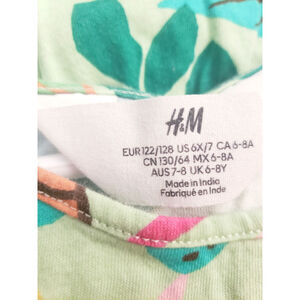 H&M Girls 6X-7 Drop Waist Green Tropical 100% Cotton Sundress