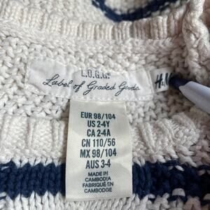 H&M Girl's Cable Knit White/Blue Striped Sweater Sz 2-4 Yrs.