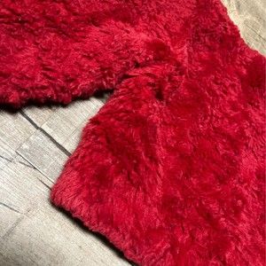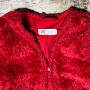 H&M Girls Faux Fur Jacket Cherry Red Furry Outerwear Coat Size 2-4 years Casual