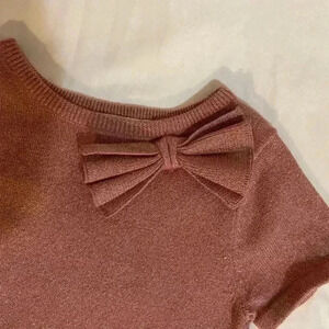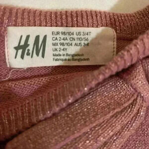 H&M Girls Kids Size 4T Short Sleeve Holiday Knit Dress with Bow Pink Glittery