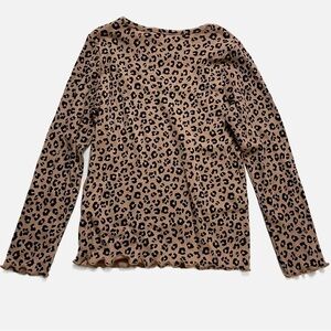 H&M Girl’s Leopard Print Long Sleeve Ruffle Top - 6-7Y