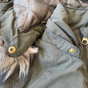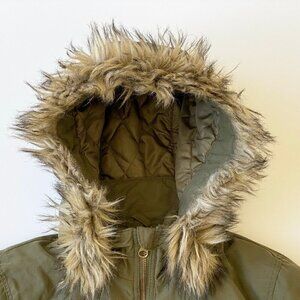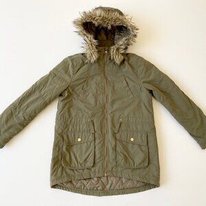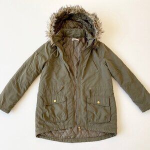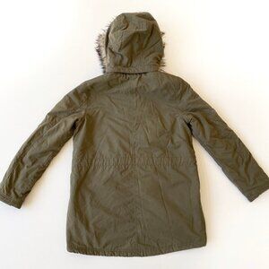 H&M Girls Parka Winter Jacket Detachable Hood Full Zip Like New Khaki Olive