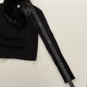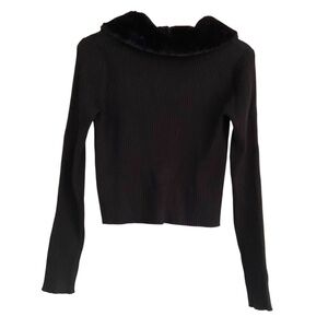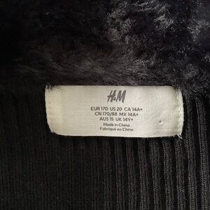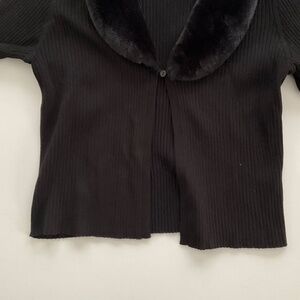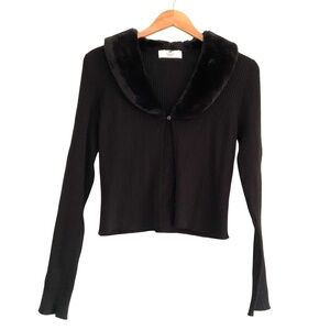 H&M Girls Ribbed Cardigan w/Faux Fur Collar Sz 20 Black Y2K Parisian Style Chic
