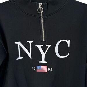 H&M Girls SZ 14Y Crop Sweatshirt "NYC" Zip Long Sleeve Stretch Black
