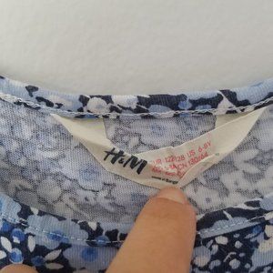 H&M Girl's Size 6-8 Cotton Tank Dress Short Sun Summer Floral White Blue