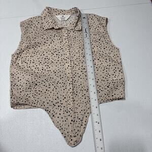 H&M Girls Sleeveless Button-Up Tie Shirt Size 12 Tan Black Dots Top Blouse