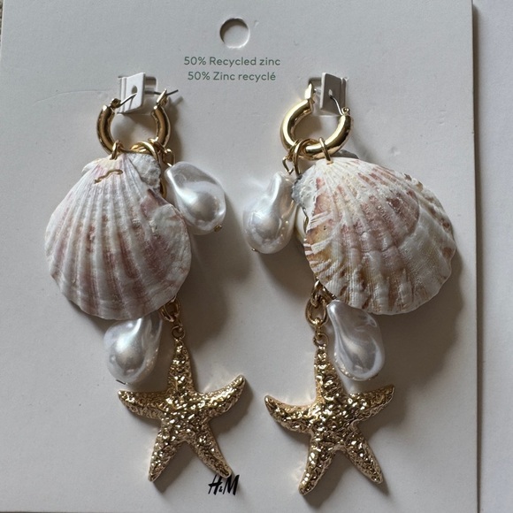 Chic H&M earrings with gold starfish and natural shell design. Perfect for a beach-inspired look.