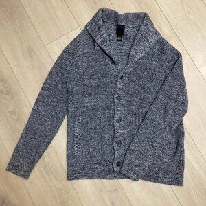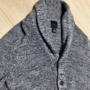 H&M Grandpa Cardigan Sweater Shawl Collar Blue Heather Button Chunky Grandpacore