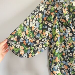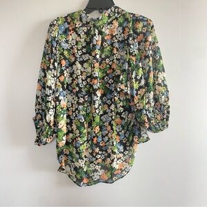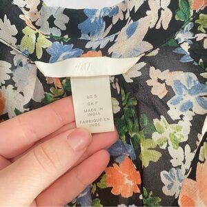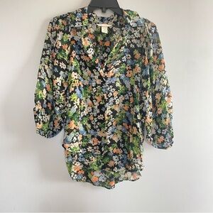 This stylish blouse from H&M showcases a relaxed fit with a striking graphic design in black and green. Featuring a notched collar, it offers a chic and comfortable look perfect for any occasion.