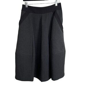 H&M Gray Black Trim Full A-Line Midi Substantial Skirt Pockets Size 8