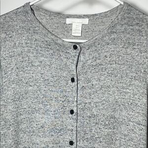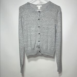 Stay cozy and stylish with this elegant gray button-up sweater. Perfect for any occasion.