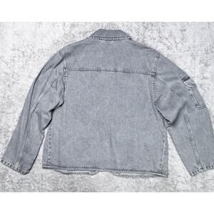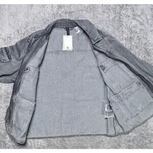 H&M Gray Denim Utility Cargo Jacket Full Zip Womens Size M NWT