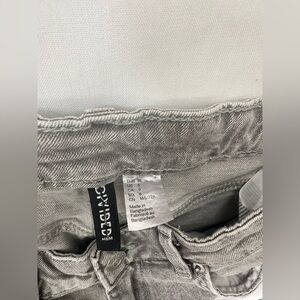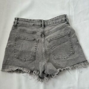 Chic gray jean shorts with frayed hem. Ideal for casual wear.