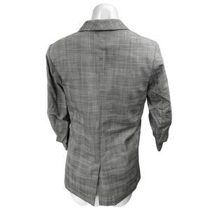 H&M Gray Plaid Long Sleeve Shaw Collar Pocket Open Blazer Coat Jacket Size 2
