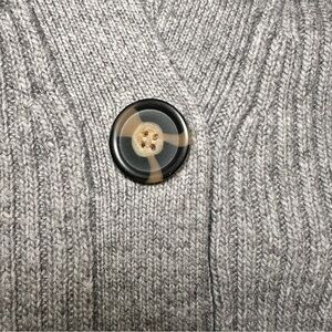 Chic gray cardigan with ribbed texture. Tortoiseshell buttons. Pit to pit measures approx 20.5”.