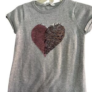 H&M Gray Sequins Heart Sweater Dress Knit Short Sleeve Girls 8-10