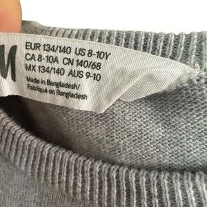 H&M Gray Sequins Heart Sweater Dress Knit Short Sleeve Girls Size 8-10