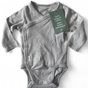 H&M Gray Striped Organic Cotton Bodysuit