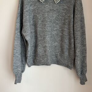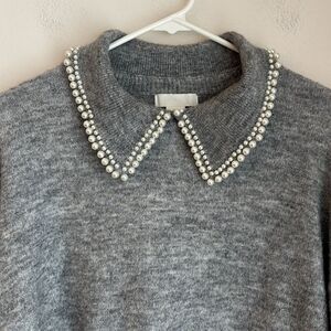 H&M Gray Sweater with Pearl Collar pan collar women’s boxy neutral size medium