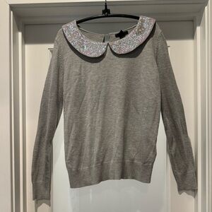 H&M Gray Sweater with Sparkly Sequin Collar Women’s M Holiday Party Top