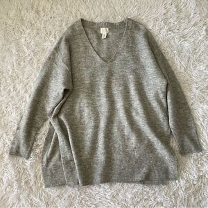 H&M Gray V-Neck Long Sleeve Boxy Relaxed Fit Sweater Dress Size M