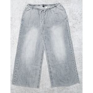 H&M Gray Wash Wide Leg Pull On Denim Jeans Pants Ankle Length Womens Size M