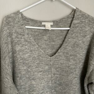 H&M Gray Wool Blend V-Neck Tunic Sweater (S)