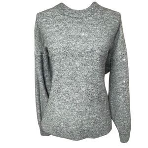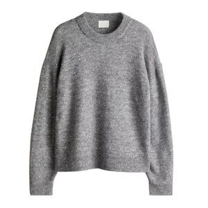 H&M Gray Melange and Sequin Embellished Crew Sweater