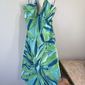 H&M Green Blue Printed Halter V-Neck Midi Dress Size M A-line Spring Summer New
