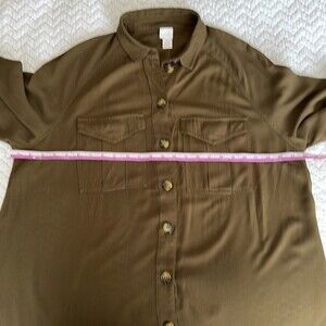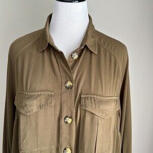 H&M Green Button Down Military Style Maxi Dress Front Pockets size 16