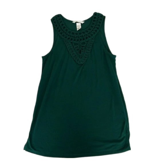 H&M Green Crochet Tank Size XS Side slit hem Shoulder to hem 27 inches
