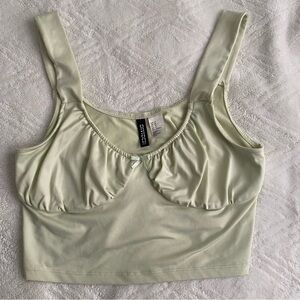 H&M Green Fitted Ruched Crop Tank Top